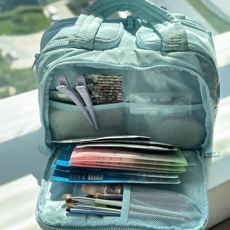 メイクバッグ かわいい 大容量 メイク ピンク アイボリー ブラック ブルー