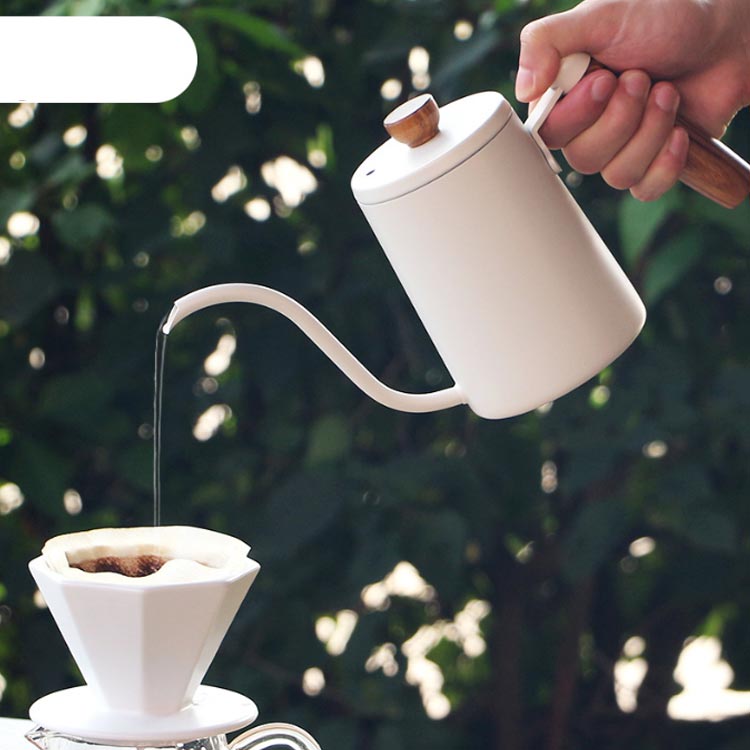 注ぎ口の細いドリップケトルはお湯のスピードがコントロールしやすく、おいしいコーヒーを淹れるのに役立ちます。