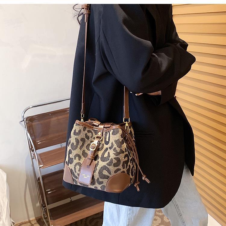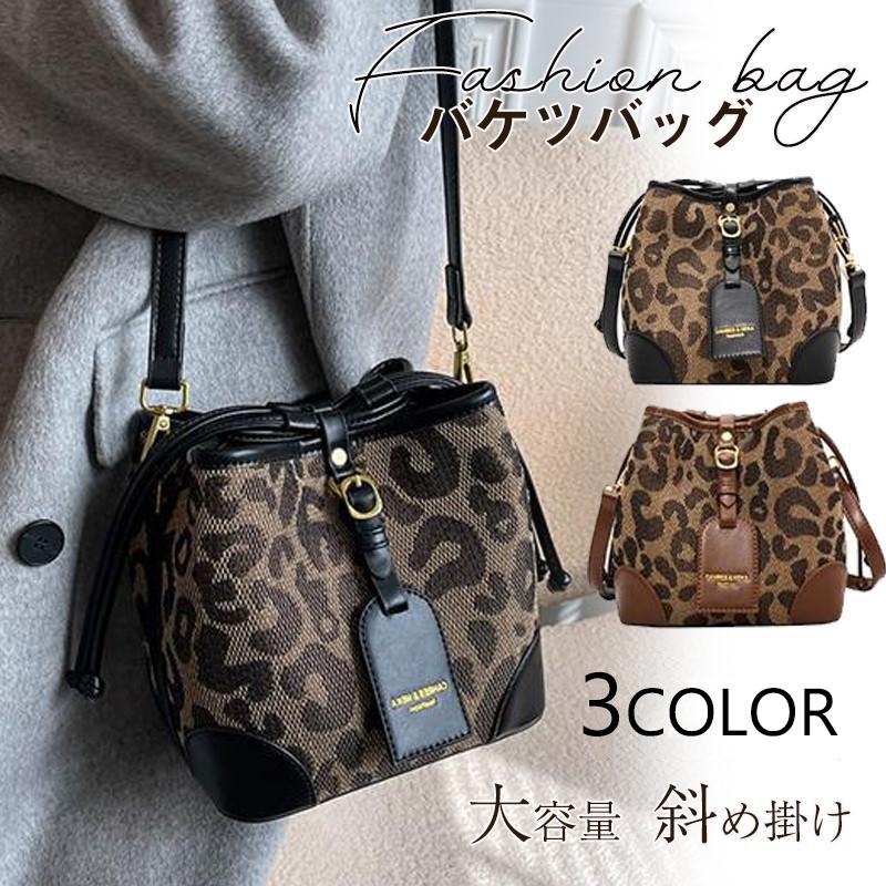 【キーワード】バケツバッグ バケツ型バッグ レディース ショルダーバッグ 斜め掛け 大容量 バッグ ヒョウ柄 おしゃれ 軽量 お出かけ 通勤バッグ カジュアル