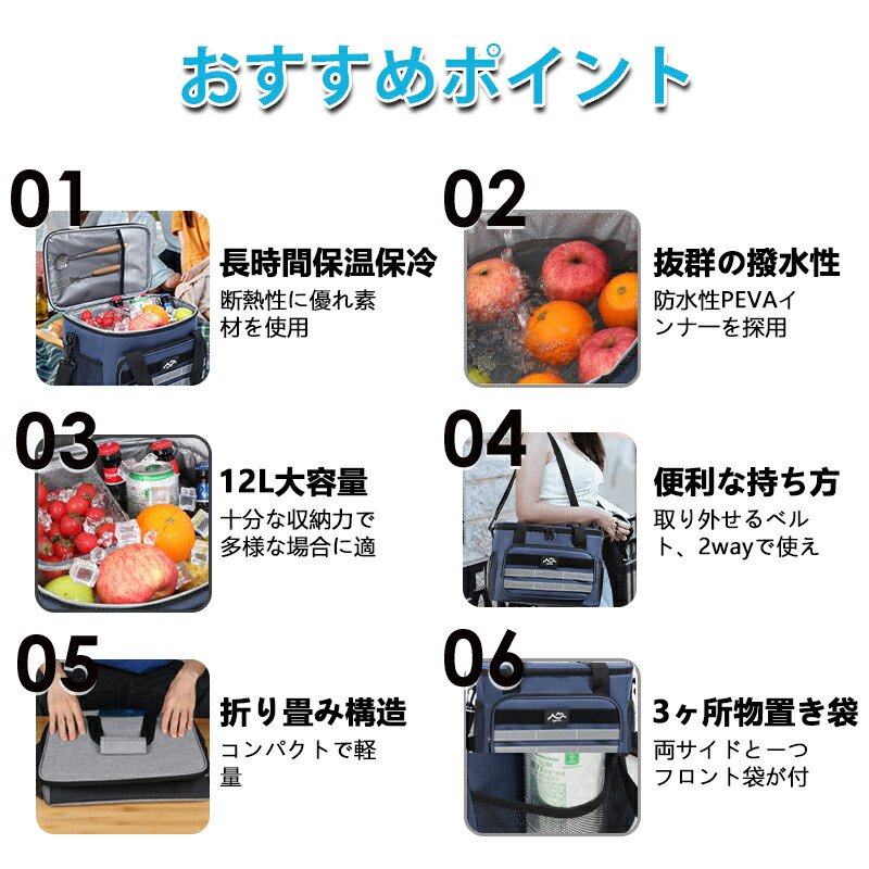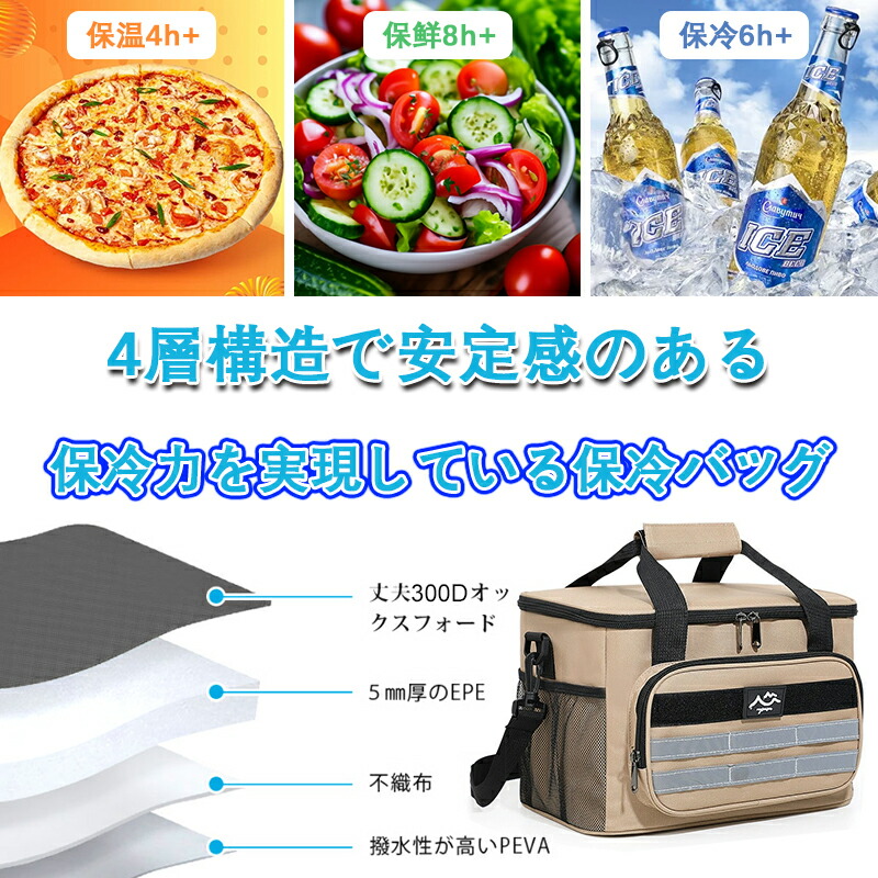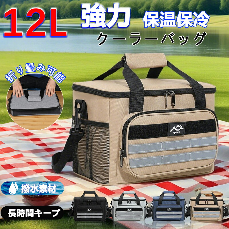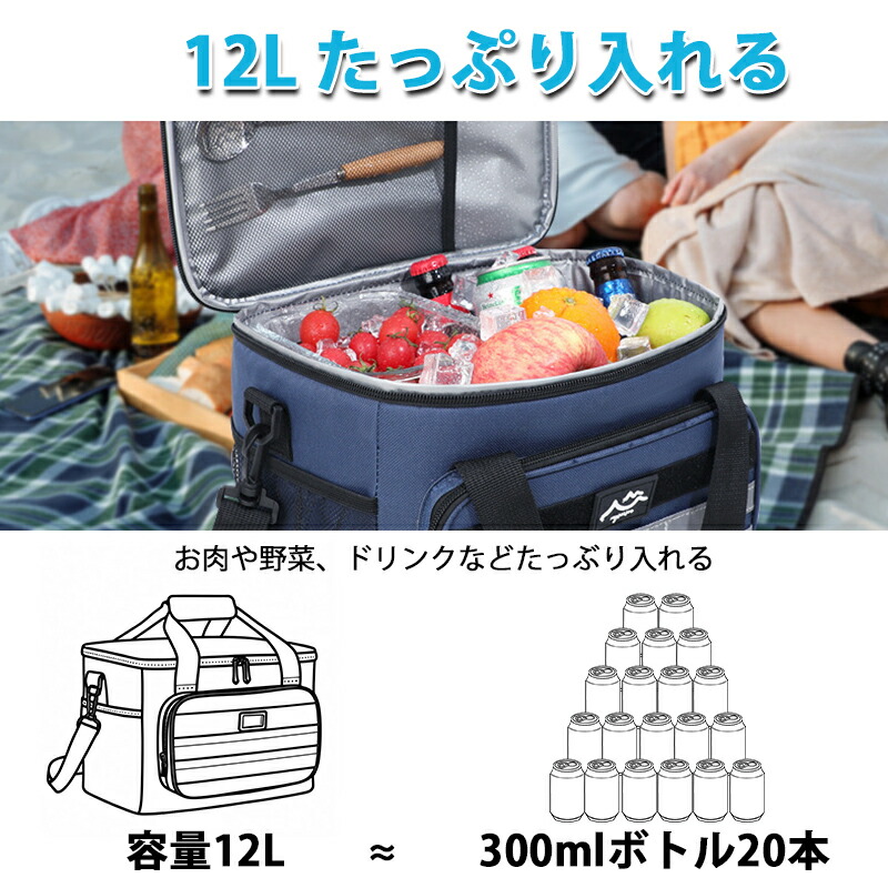 ソフトクーラーボックス 保冷バッグ 大容量 12L クーラーバッグ 折りたたみ 4層断熱 ボックス型 ソフト クーラーボックス 超強力 撥水材質 多機能ポケット付き 手提げ 肩掛け 隔熱層
