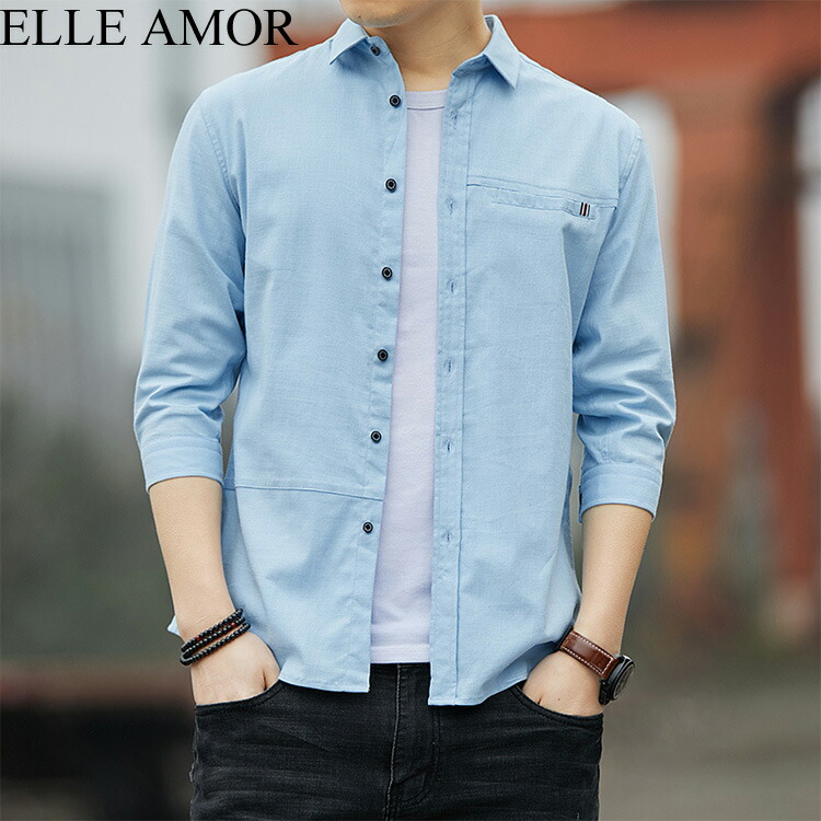 メンズフィットシャツ カジュアル スタンダードフィット 七分袖ボタンダウンメンズ 半袖シャツワイシャツカジュアルメンズシャツ韓国ファッション通勤夏新作ファッションサラリーマン