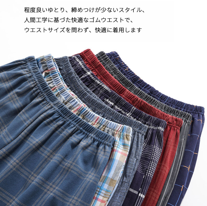 パジャマ パンツ ルームウェア メンズ ギンガムチェック イージーパンツ ルームパンツ ズボン ポケット付き 秋 冬 夏 綿100% ゆったり リラックスパンツ ウエストゴ ボトムス