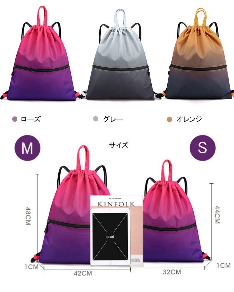 ナップサック プールバッグ レディース キッズ バッグ ランドセル ビーチバッグ プールバッグ 早い者勝ち ローズ グレー オレンジ S M
