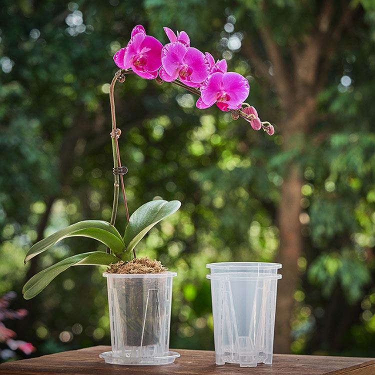 【室内外兼用】屋内外問わず、クリア苗ポットを手軽に置けます。この蘭鉢があれば、新しい鉢で蘭が元気に育っている様子を自由に見ることができます。