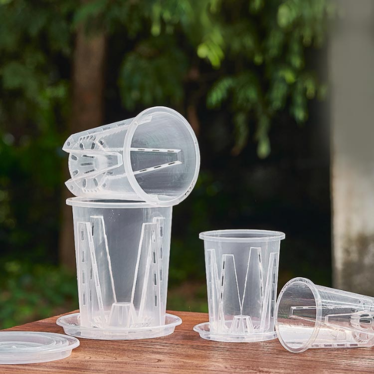 【排水設計】穴の開いた蘭の鉢は、蘭の自然な成長条件を模倣しています。各蘭の鉢には、植物の根に空気循環を提供し、健康な植物の成長のために余分な水を排出するための多くの排水穴があります。
