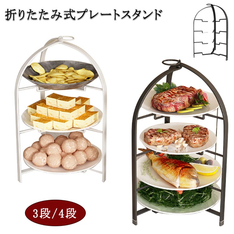 ケーキスタンド 折りたたみ 3段 4段 食器 カトラリー グラス 食器 ケーキスタンド ケーキドーム 早い者勝ち ブラック ホワイト 3段 4段