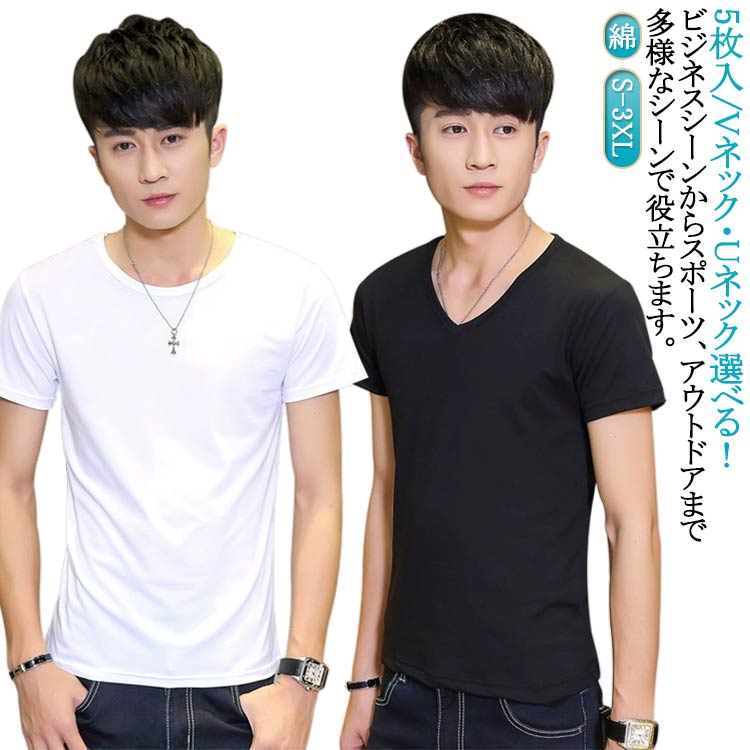 5枚セット インナー メンズ Vネック トップス Tシャツ カットソー 人気 5枚Uネック黒 5枚Uネック白 5枚Vネック黒 5枚Vネック白 S M L XL 2XL 3XL
