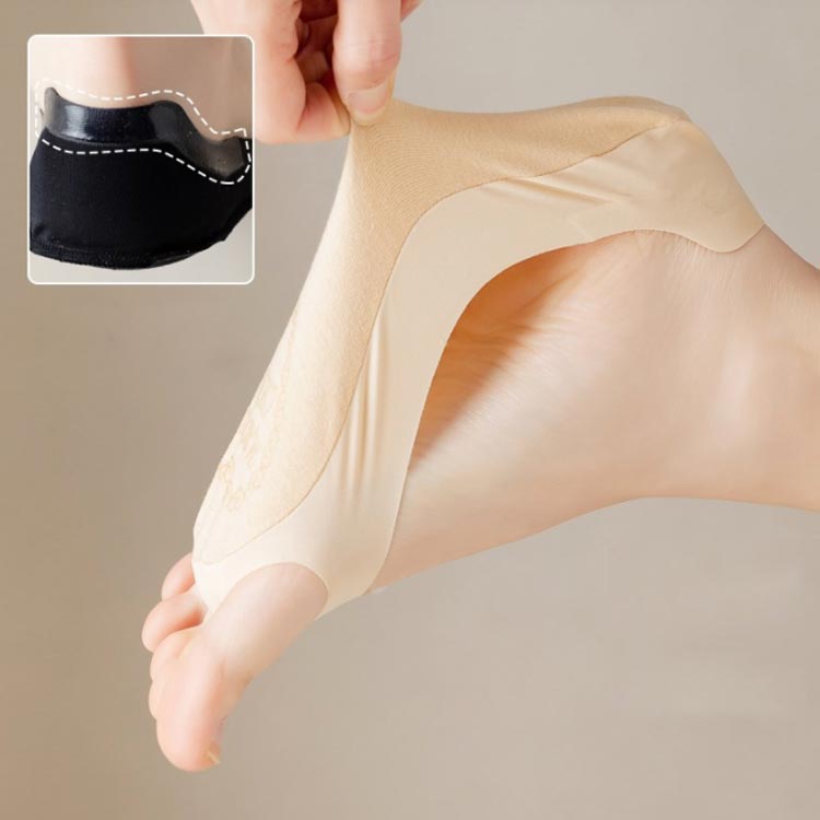 浅履きタイプのフットカバーソックスで、脱げにくい強力なシリコンを履き口の内側の周りに使い、履きやすく見えにくいのでパンプスやローファーにぴったり。