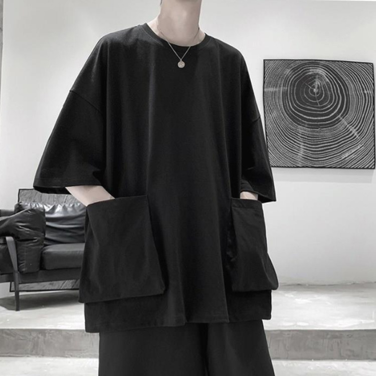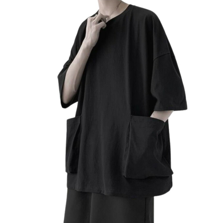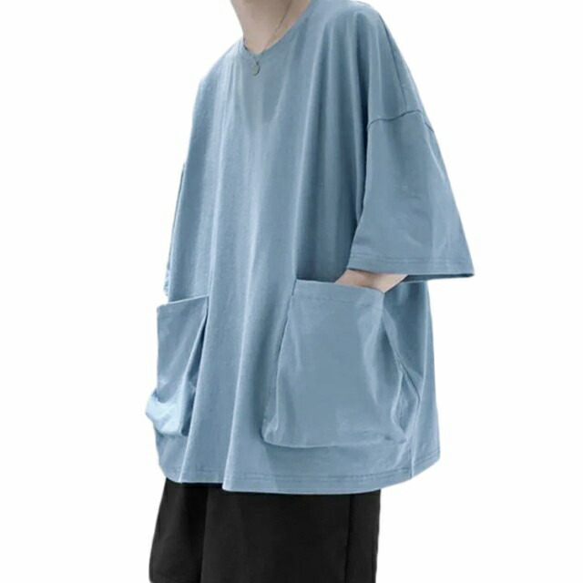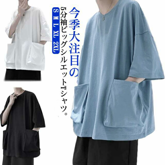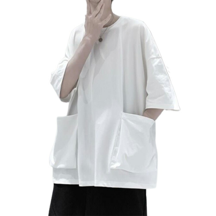 tシャツ ビッグシルエット 半袖Tシャツ ビッグポケット付き 5分袖Tシャツ 夏服 メンズ メンズtシャツ ビッグT 大きめポケット カジュアル トップス ラウンドネック 夏 大きサイズ 無地 春夏