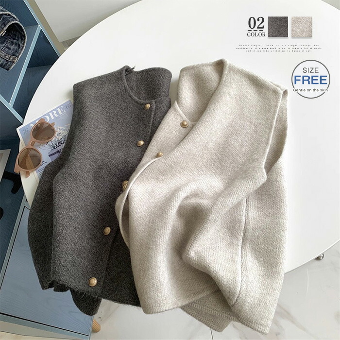 ニット ベスト レディース 秋冬 ファ レディースファッション 豊富な品揃え ベージュ ダークグレー 黒 キャメル