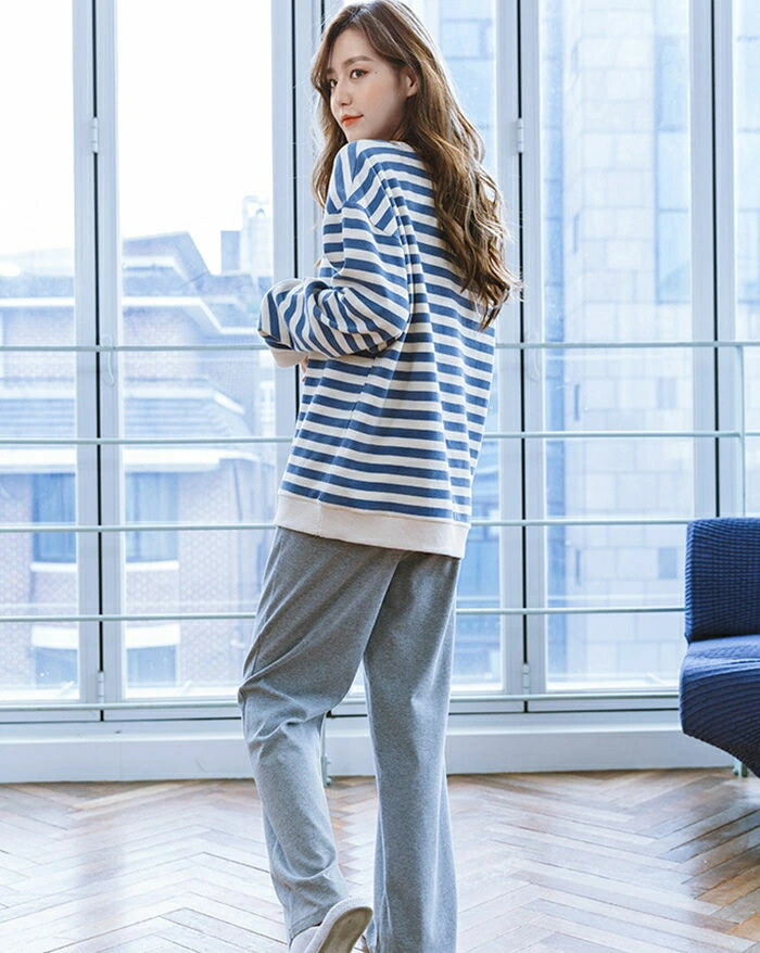 綿100% パジャマ 部屋着 ルームウェア 長袖 秋 冬 Tシャツ セットアップ ロングパンツ コットン100% レディース 上下セット ボーダー 柔らかい ウエストゴム ナイトウェ 可愛い