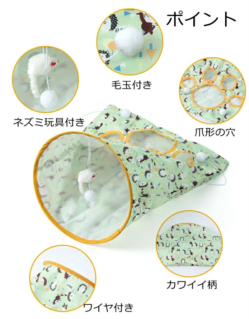 猫 トンネル おもちゃ 子猫 猫トンネ 猫用品 おもちゃ トンネル 豊富 うさぎ柄 クマ柄 オレンジ グリーン