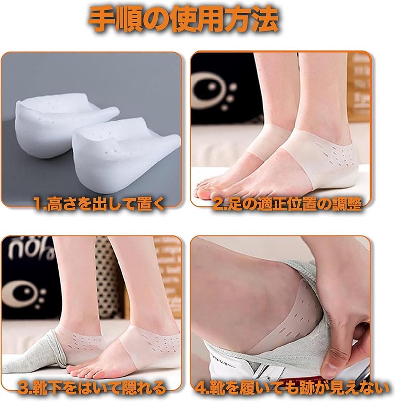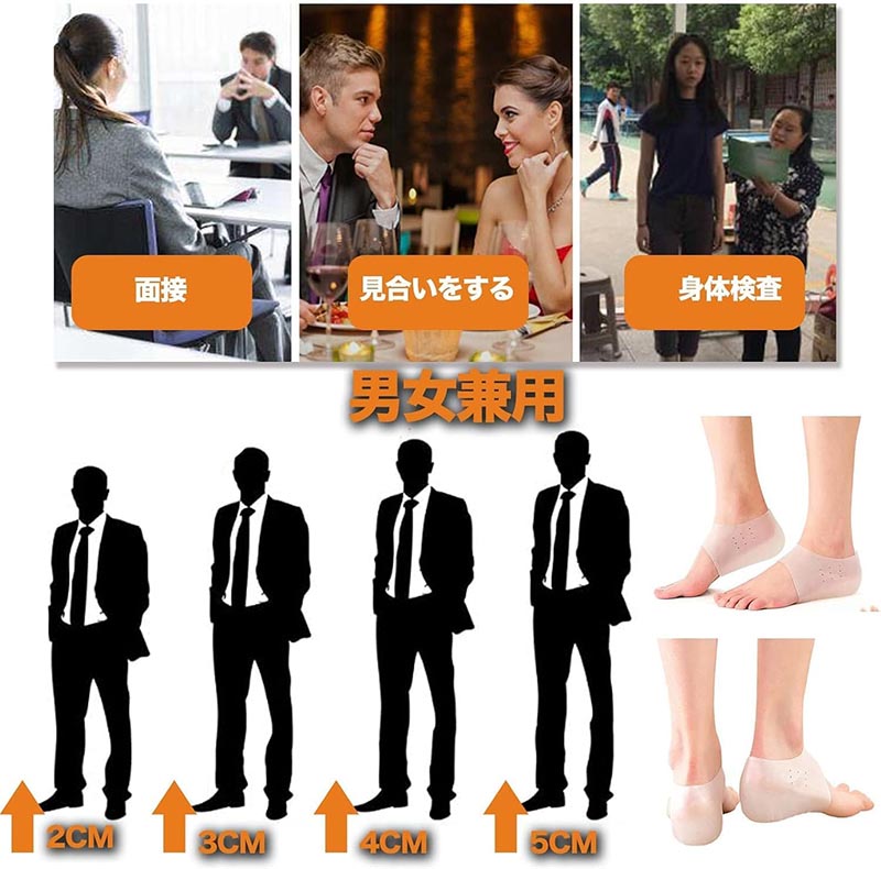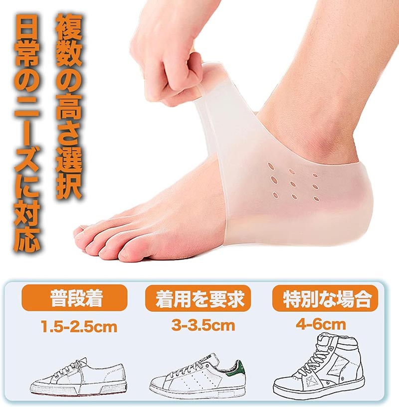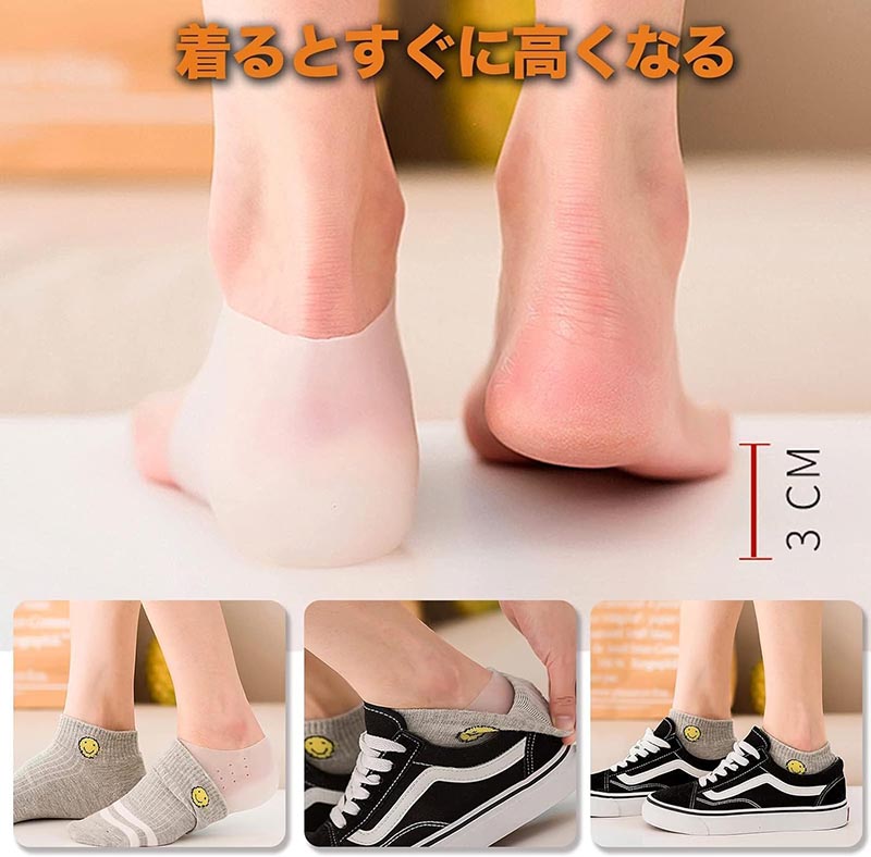 2cm 3cm 4cm 5cm 6cm 7cm シークレットインソール 取り外し可能 インソール 身長アップ 靴下で隠せる クッション 高通気性 衝撃吸収 シリコン メンズ レディース 中敷 かかと