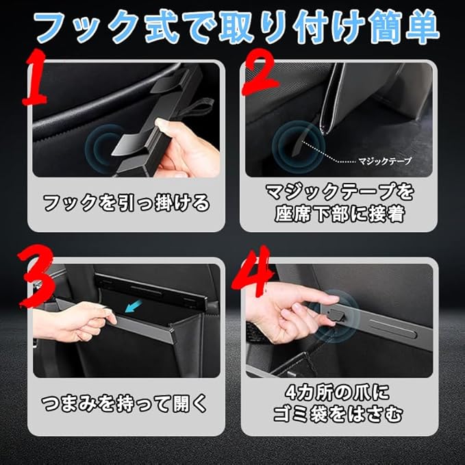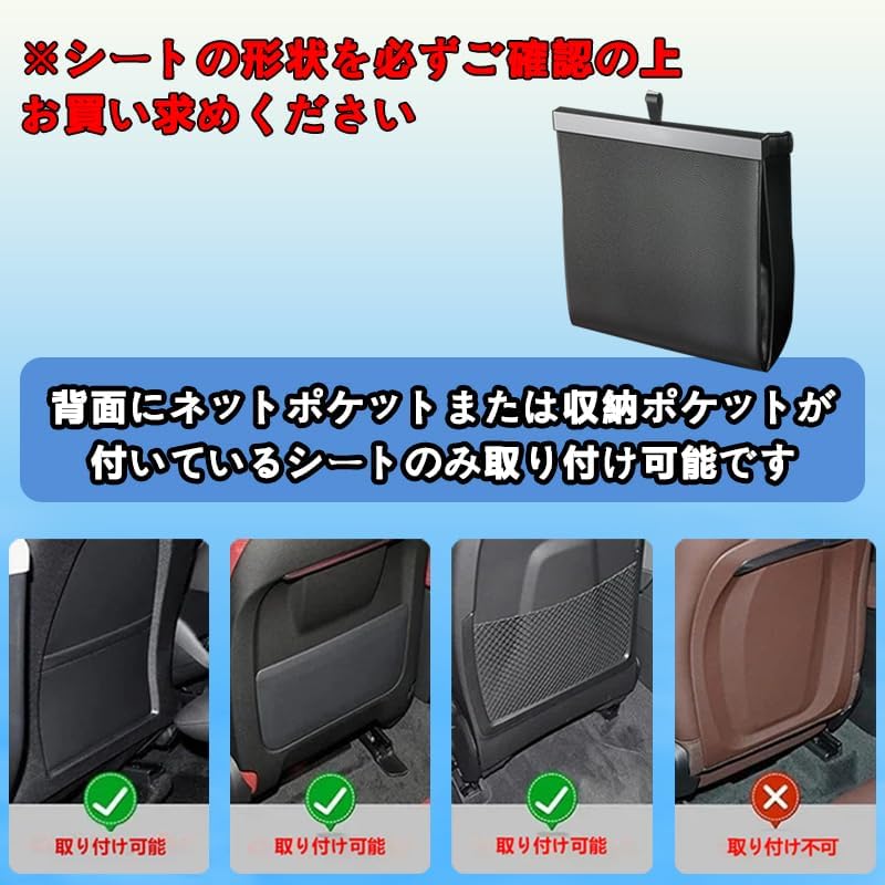 【高耐水性】防水仕様で、液体のゴミを捨てても漏れることなく安心です。汚れた場合も簡単に水拭きでお手入れができます。※バックポケットがない車には取り付けできませんので、購入前にご確認いただきますようお願いいたします。