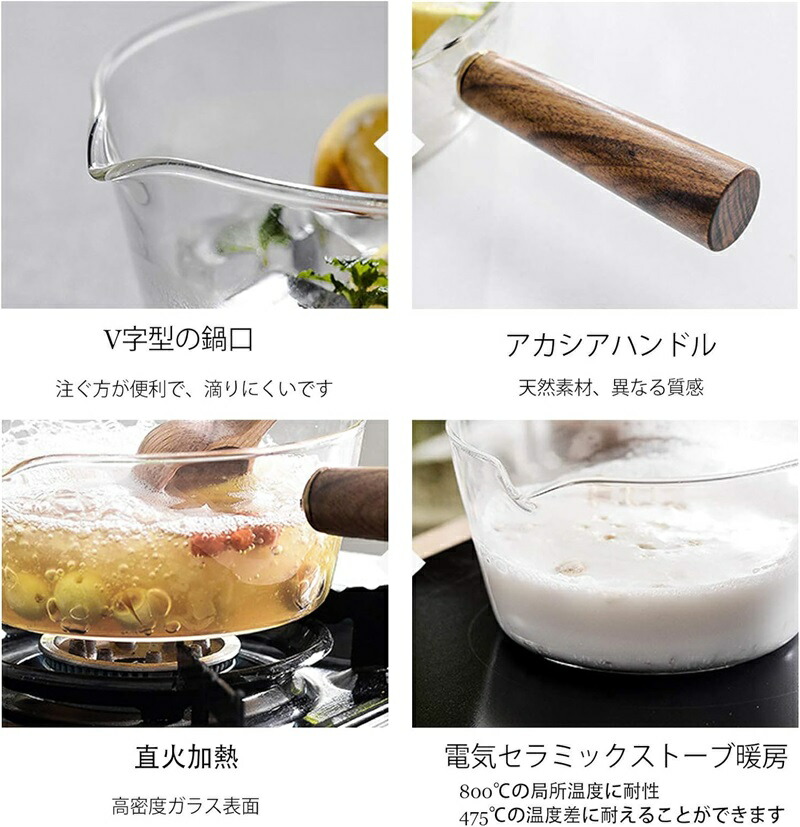 スープ鍋 片手鍋 ガラス鍋 ミルクポット 両手鍋 牛乳鍋 小鍋 ミルク鍋 耐熱ガラス鍋 調理器具 直火 耐熱性 ガラス洗練鍋 温かい料理 透明な蒸しボウルおしゃれ お手入れ簡単 掃除が簡単 多 可愛い
