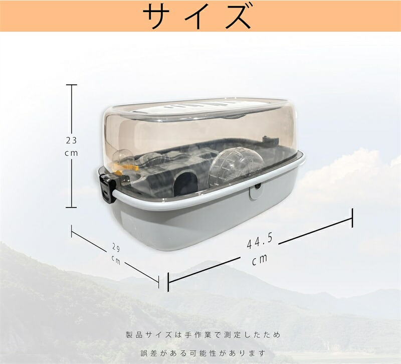 広々としたスペース 製品はサイズが45cm × 30cm × 25cmで、十分な広さを提供します。ハムスターが自由に遊び回るのに最適なスペースを確保しており、快適な環境で飼育することができます。