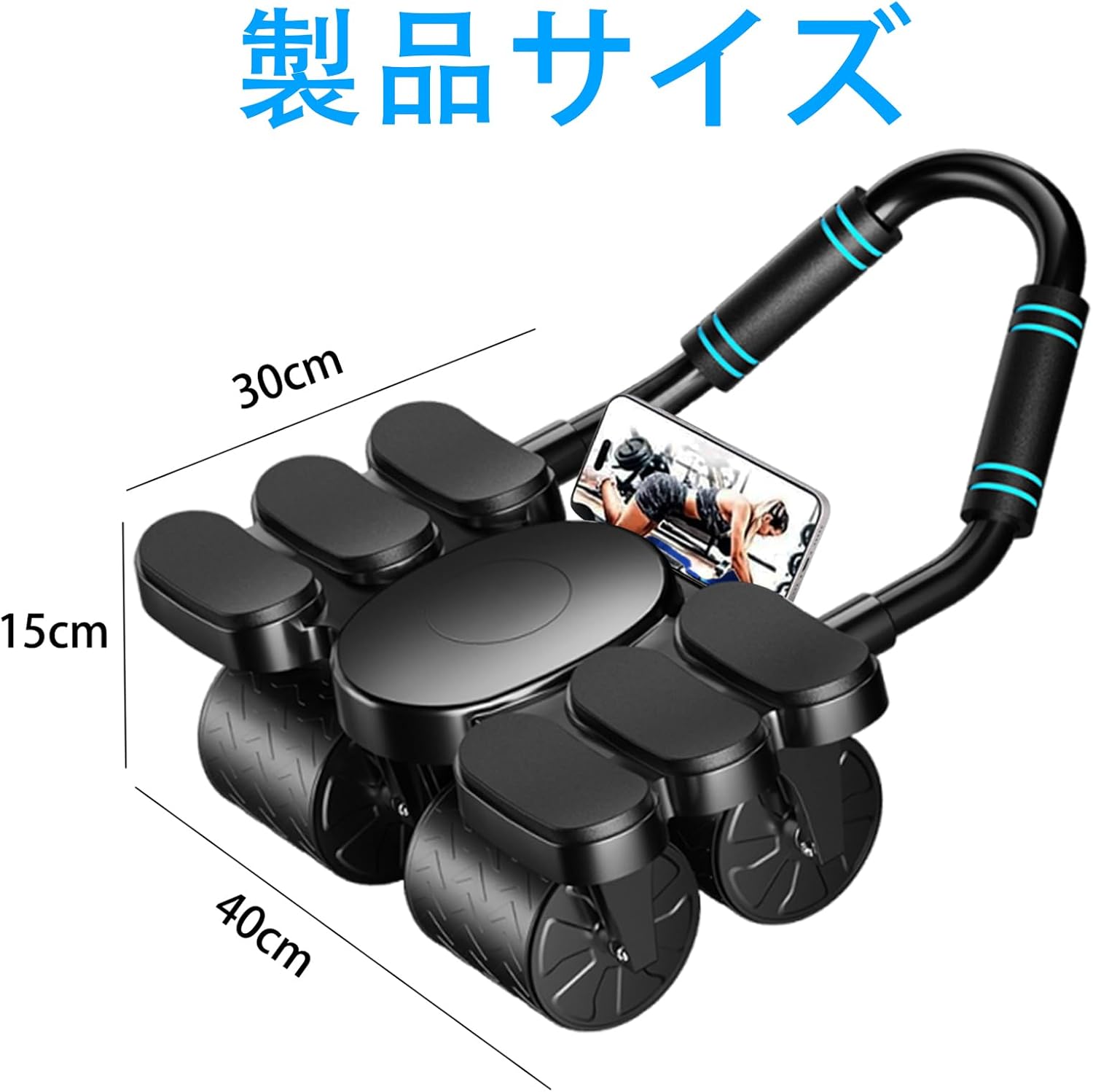 腹筋ローラー アブローラー アブホイール 筋肉ローラー エクササイズローラ オートリターン機能 スマホ置き台付き 膝マット付属 家庭用 腹筋強化 耐久性 滑らか回転 室内トレーニング器具 核心筋力