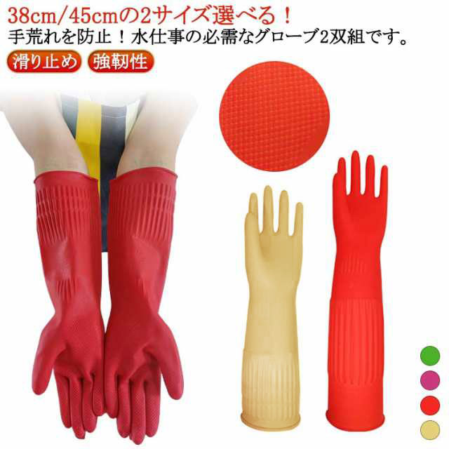 食器洗い 洗車用 園芸 ロング 滑り止め キッチングローブ 2双組 38cm 45cm 耐久性 洗浄用 洗濯用 ペットケア ゴム手袋 多用途 強靭性 防水 塗装用