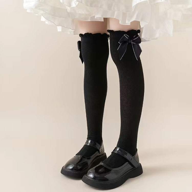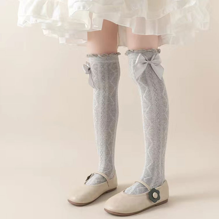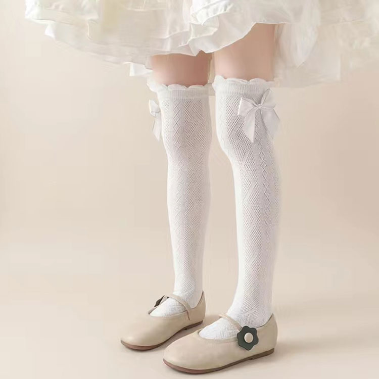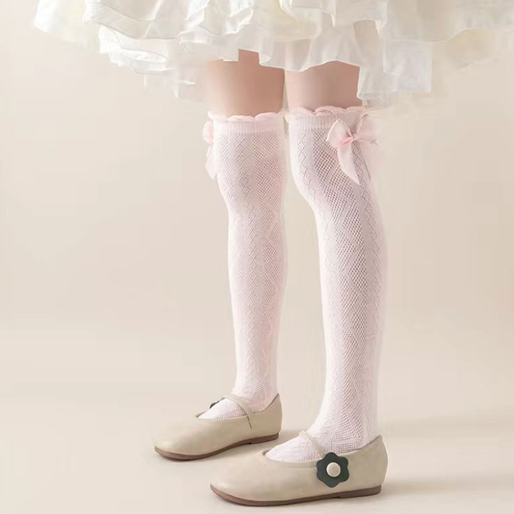 女の子 ハイソックス 2足セット ニーハイソックス 薄手 メッシュ 日焼け防止 靴下 キッズ オーバーニーハイ かわいい リボン ロング 長い 膝上 おしゃれ 可愛い 子ども こども 子供 ソックス