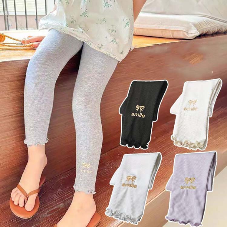 吸汗排湿 キッズレギンス 女の子 夏用 レギンス リブ スパッツ レギンスパンツ シンプル 無地 ボトムス リブ編み 涼しい 子供服 ストレッチ フリル 可愛い 日焼け防止 新体操 通園 通学 ダンス