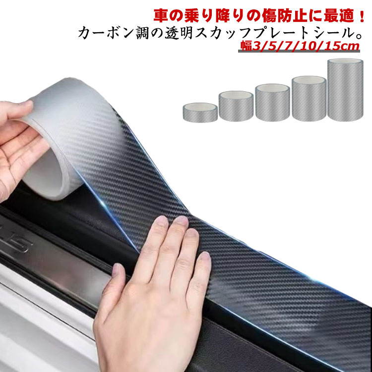 汎用 傷 透明 スカッフプレートシール サイドステップ 保護 幅3 5 7 10 15cm 5m ドア テープ 防止 ステッカー カーボン調 黒 車 足元 カーボンシート 傷防止