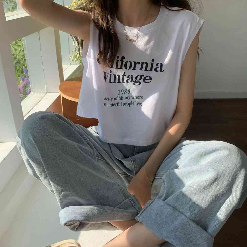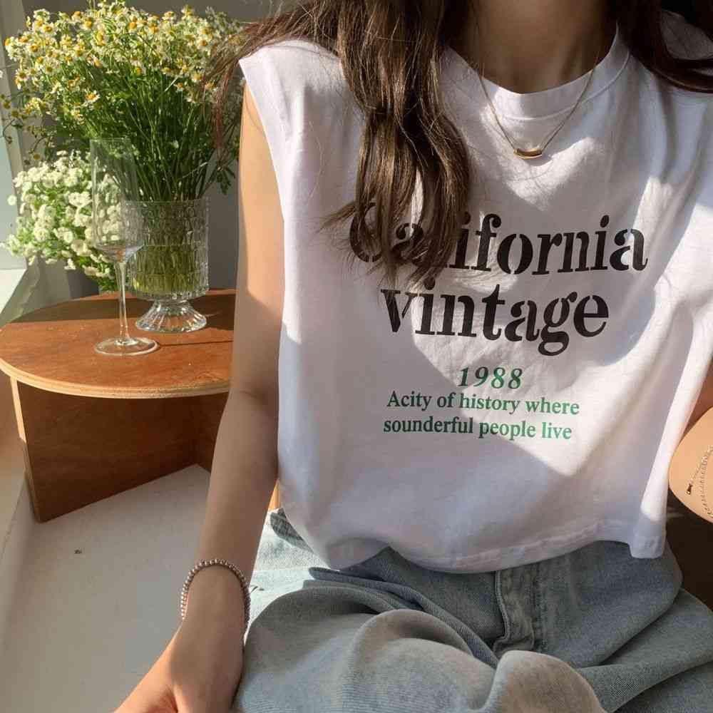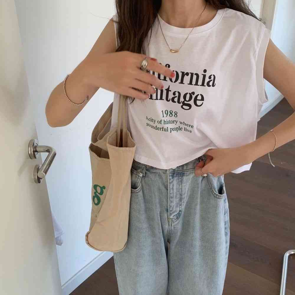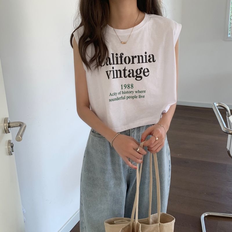タンクトップレディースTシャツノースリーブUネックロゴプリント