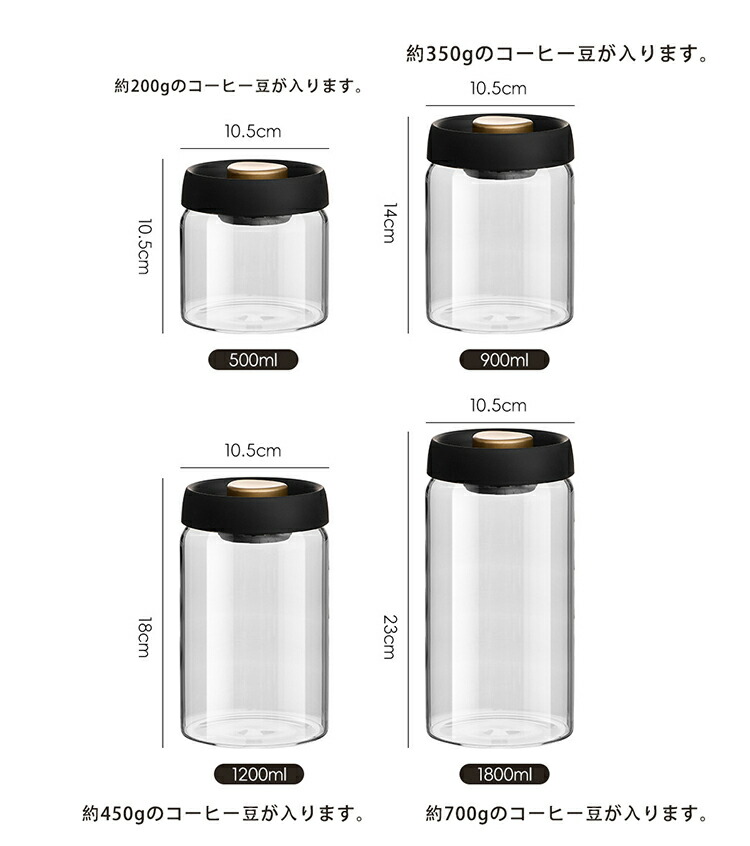 真空 保存容器 コーヒー豆収納 豆収納 4サイズ 真空容器 フードストッカー 500ml 900ml 1200ml 1800ml コーヒー豆 乾物 ペットフード 梅雨対策 密封 ストッカー フー 漬物