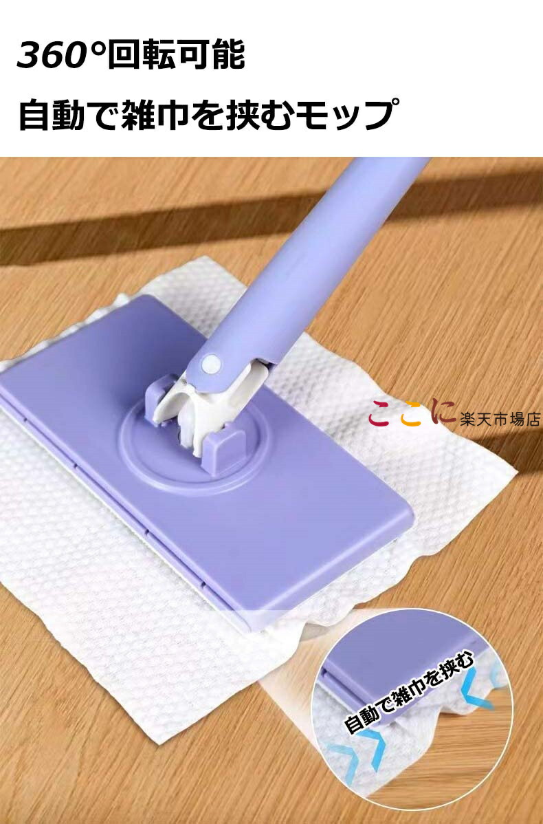 乾湿両用モップ 掃除布4枚付き 自動で雑巾を挟むモップ、ペーパータオル掛けフローリングモップ 洗面タオルを自動で挟むモップ 全自動タオルモップ 自動で雑巾を挟むモ 汚れないハンドモップ