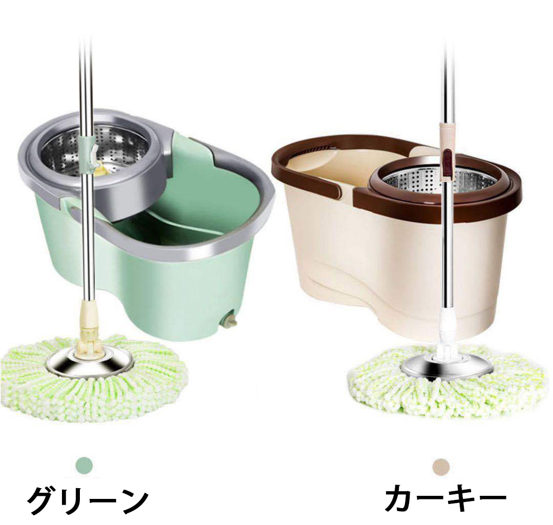 回転モップ フロアモップ フローリング 掃除用品 モップ 特集 グリーン カーキー 合計:クロス2枚 合計:クロス4枚 合計:クロス6枚
