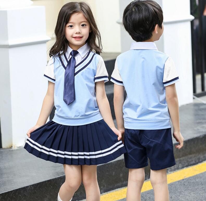 子供 入学式 半袖 スーツ 学園風 男の子 女の子 制服 上下セット藍色フォーマル 学生服 スクールシャツ キッズ ポロシャツ ジュニア プリーツスカート子どもダンス 演出服 幼稚園 中学校制服