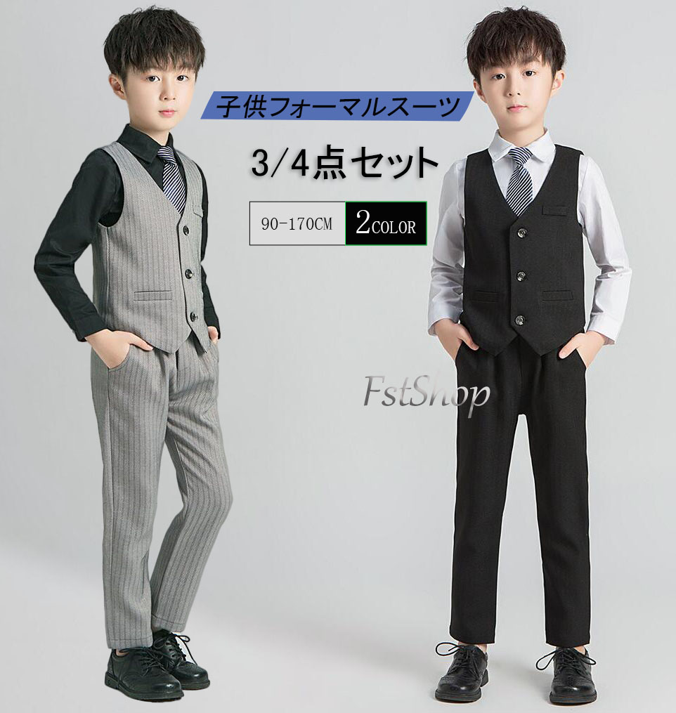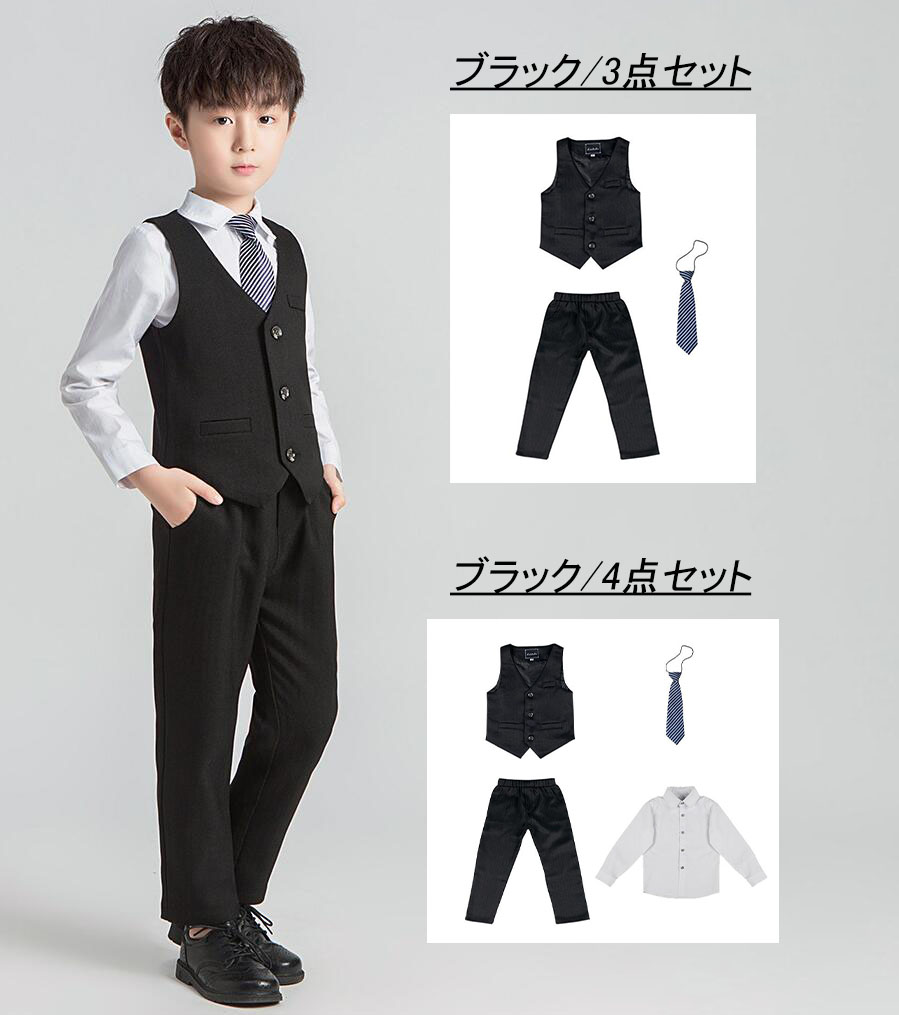 子供フォーマルベストセット 子供服 キ キッズ スーツ カジュアルセットアップ 礼服 通販 グレー ブラック 3点セット 4点セット