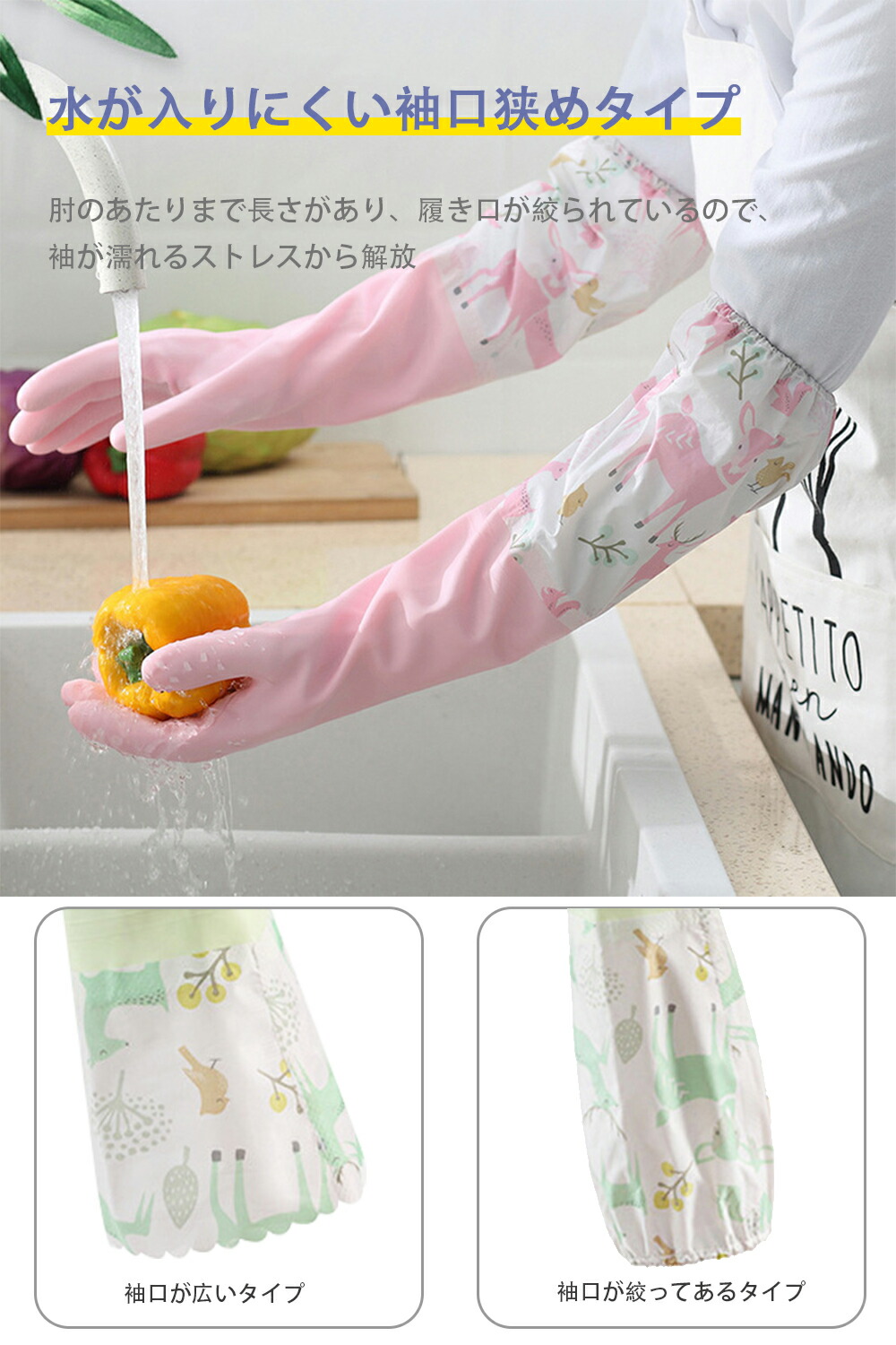 ゴム手袋 ロング 厚手 洗い物 手袋 日用品雑貨 文房具 手芸 人気 S M L 袖口が広いタイプ 袖口が絞ってあるタイプ