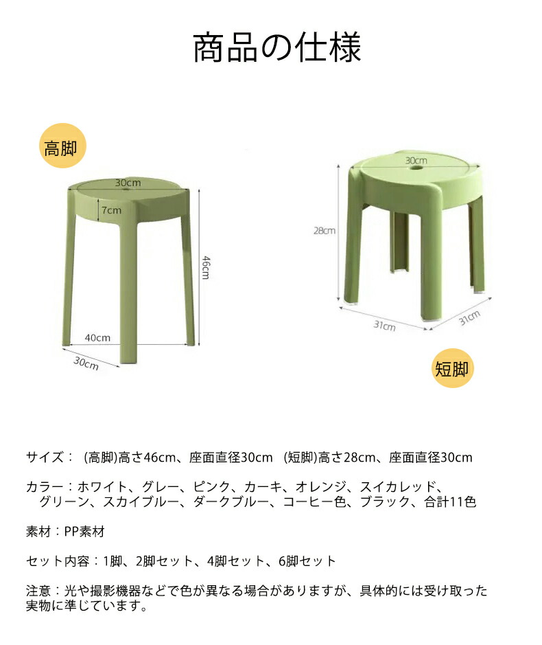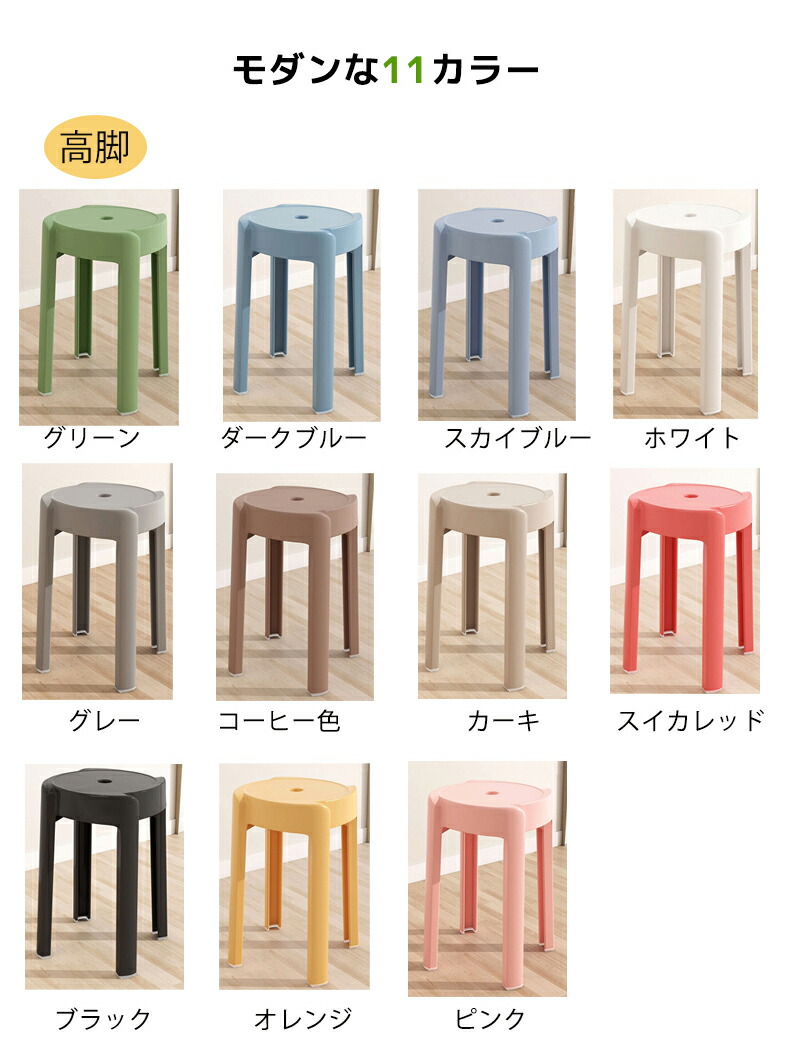 スタッキングチェア 高脚 スタッキング グリーン ダークブルー スカイブルー ホワイト グレー コーヒー色 カーキ スイカレッド ブラック オレンジ ピンク 高脚 短脚