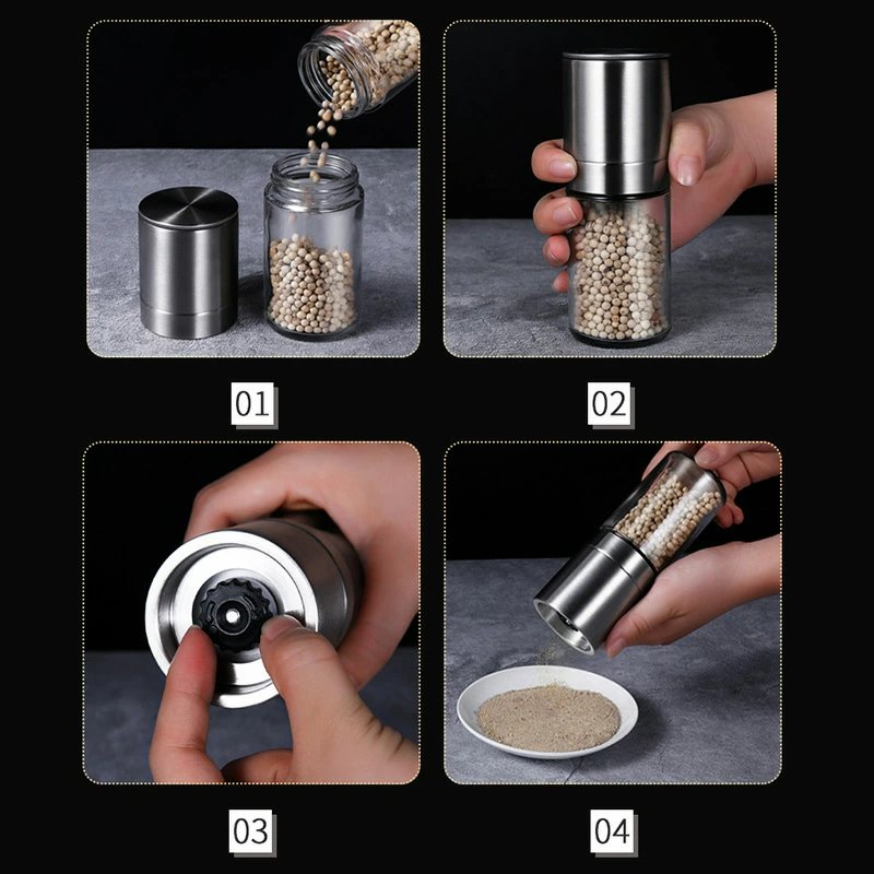 胡椒 ミルのキャップと蓋はステンレス鋼です。錆ができず,お手入れを簡単です。ソルトミルは透明な耐熱ガラスを使用 調味料の残量が見ることできます。耐熱ガラスはホウケイ酸という化学名で軽くで非常に優れた耐熱衝撃性を備えて、うっかり火のそばに置いても安心です。コショウミルの内部は高硬度のセラミック刃を使用 耐久性、耐蝕性の利点もあります。