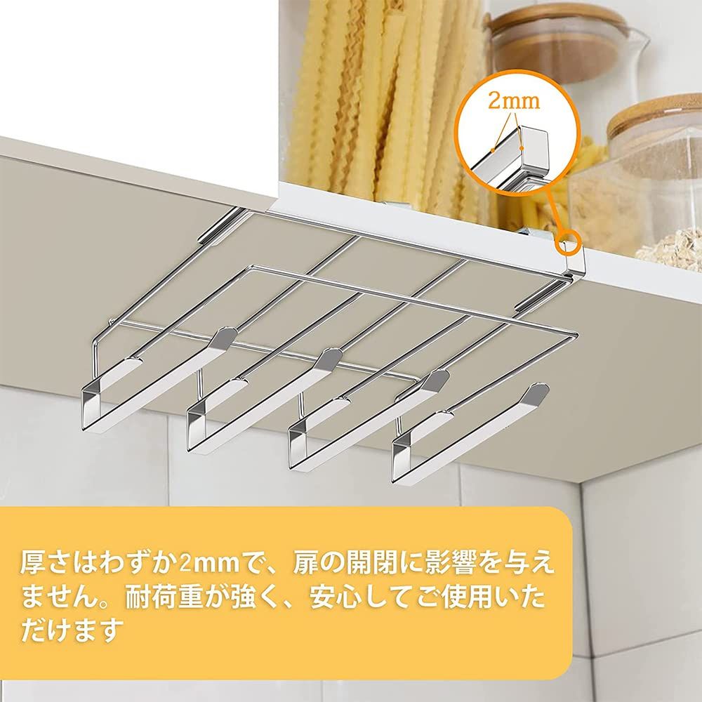 戸棚に差し込むだけで設置完了!戸棚下のスペースを有効活用することで、まな板やキッチン用品をすっきりと収納できます。吊戸棚の収納を邪魔せず、散らかりがちなキッチン用品をまとめて整理できる便利なラックです。