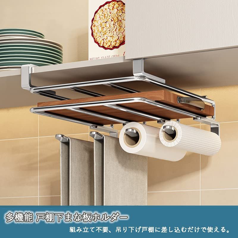 まな板スタンド 吊り下げ収納 キッチンペーパーホルダー 多機能 キッチン 収納 まな板 鍋蓋 スタンド キッチン用具 まな板置き ステンレス製 吊り戸棚下ラック 吊り下げラック キッチンツールスタンド