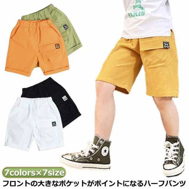 子供服 カジュアル 夏 ハーフパンツ キッズ ボトムス パンツ 新作 ブラック ホワイト オレンジ ベージュ イエロー グリーン ブルー 100cm 110cm 120cm 130cm 140cm 150cm 160cm
