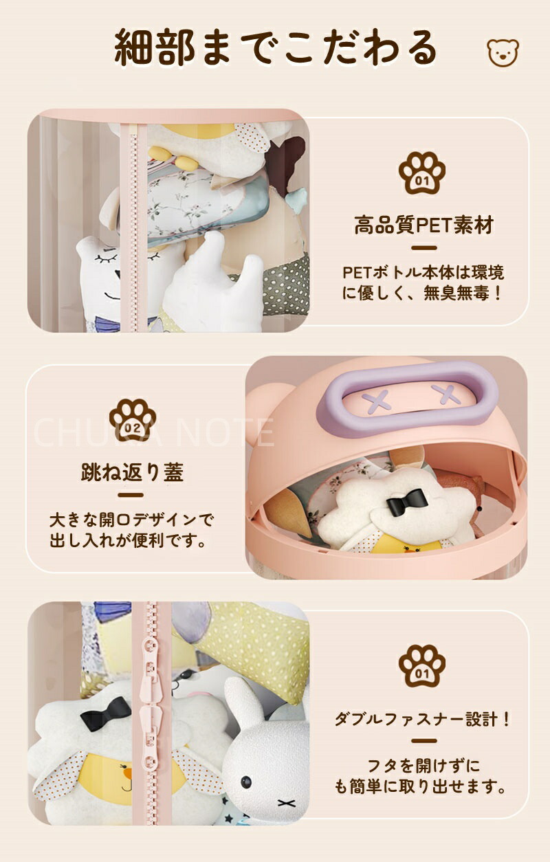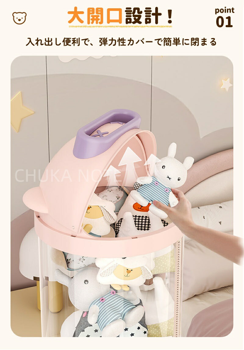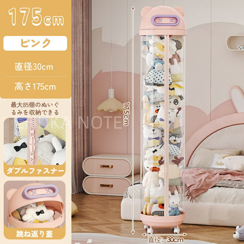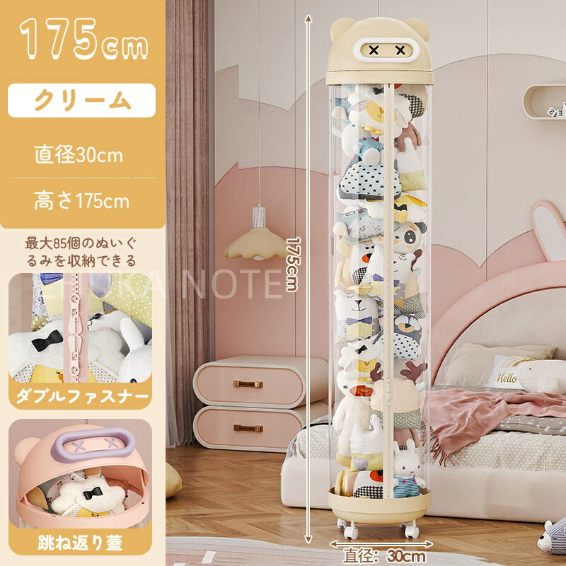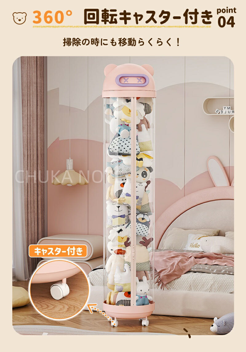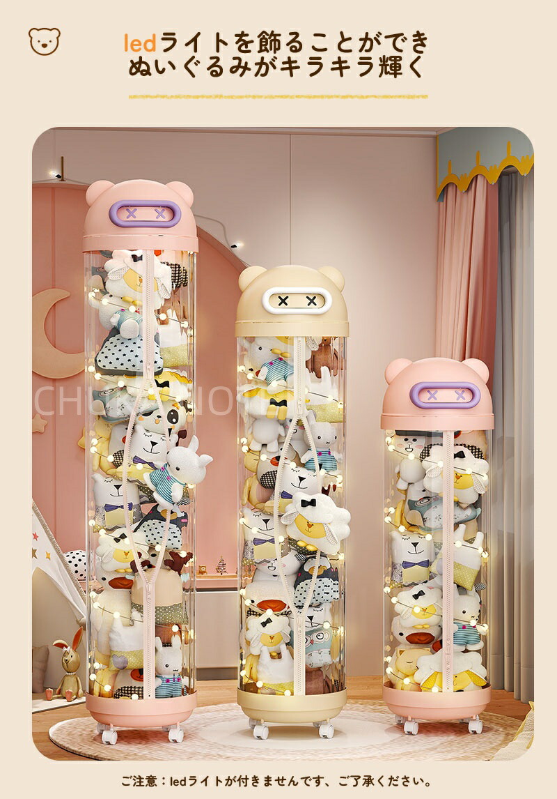 ぬいぐるみ 収納 ジッパータイプ 透明な円柱 キャスタ一付き ぬいぐるみボックス ディスプレイボックス ディスプレイラック 抱き枕 収納ボックス DIY人形ディスプレイボックス ぬいぐるみお おもちゃ