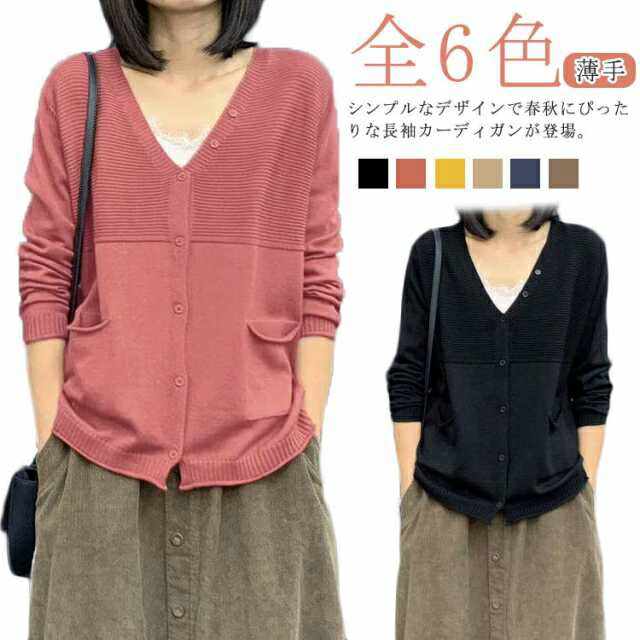 カーディガン レディース 秋服 ニットカーディガン ゆったり 春 秋 トップス ニット 薄手 冷気対策 長袖 ライトアウター ポケット付き ナチュラル 体型カバー 30代 40代 5 全6色