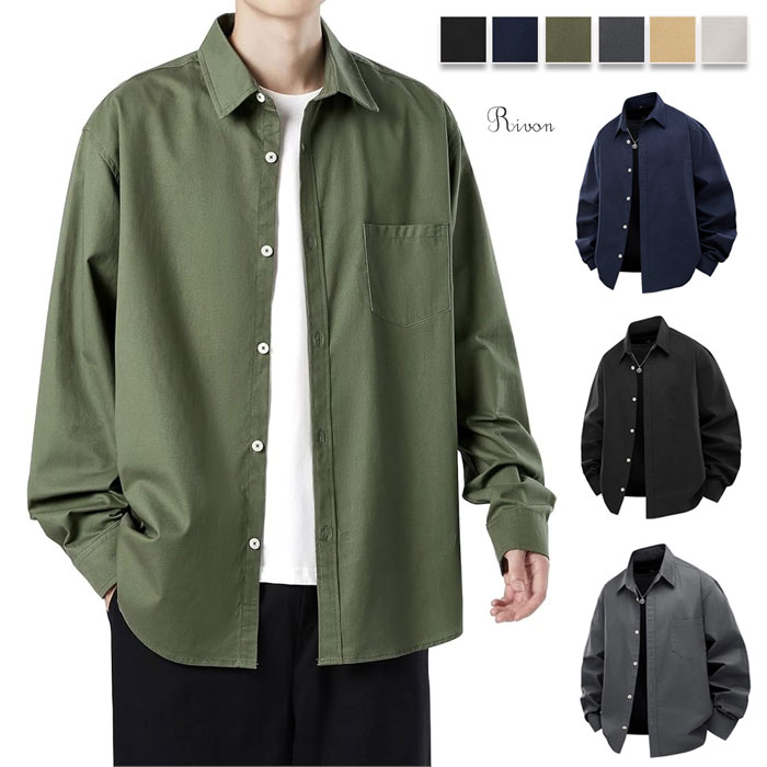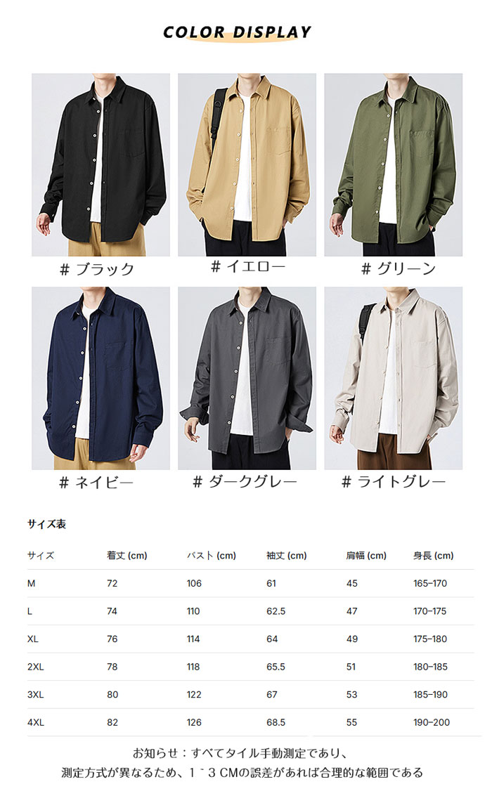 秋服 シャツ ワイシャツ 春夏秋 長袖 メンズファッション 新登場! ブラック イエロー グリーン ネイビー ダークグレー ライトグレー M L XL 2XL 3XL 4XL