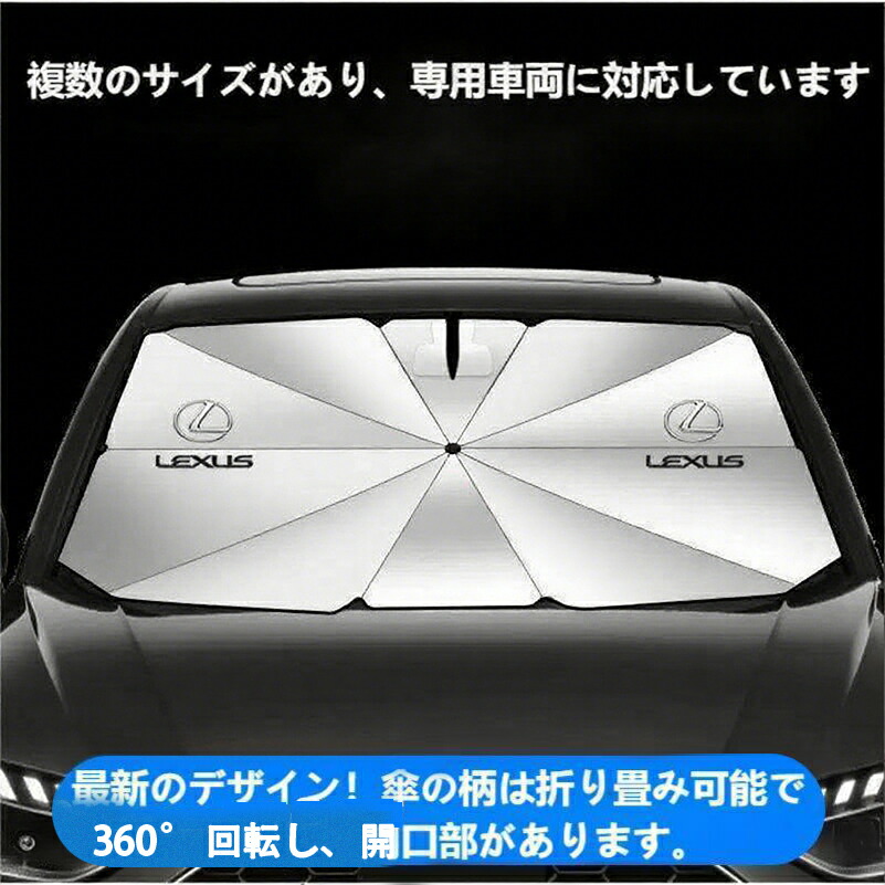 商品名:レクサス LEXUS 暑さ対策 傘型 サンシェード 車用サンシェード 車の前部のためのサンシェード フロントサンシェード 車内 遮光 断熱 折りたたみ 傘型 車用パラソル フロントガラス 車窓 日除け 収納便利 紫外線対策