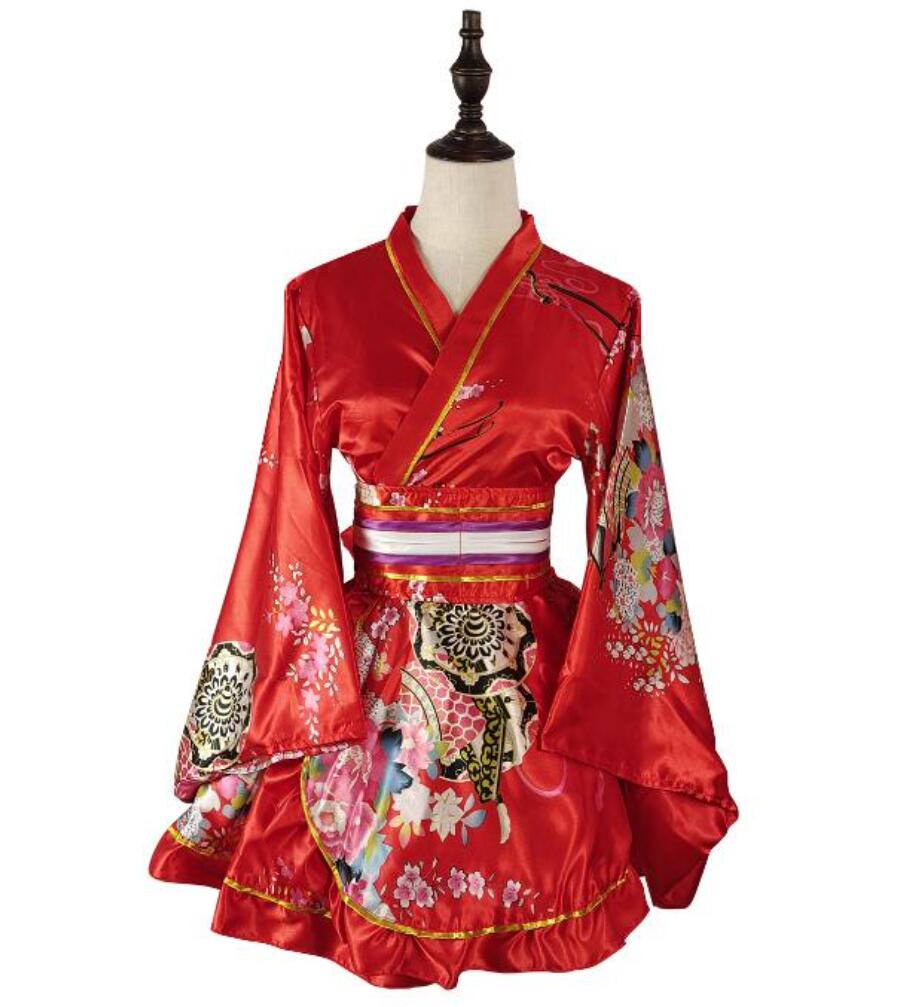 レディース着物 ショート丈 浴衣 桜柄 花魁 ワンピース 可愛い cosplay コスプレ 着物ドレス コスプレ衣装 振袖ドレス コスチューム 和柄 着物ドレ 成人式