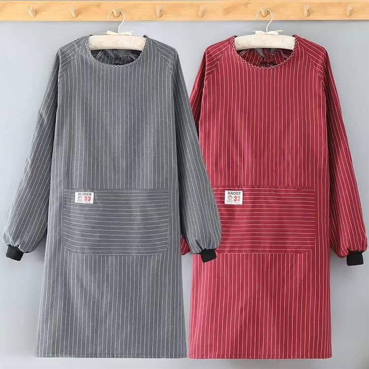 防油 割烹着 保育士 長袖 レディース キッチン 後ろ紐留め 大きいサイズ ポケット付き メンズ スモック 割ぽう着 ストライプ エプロン 汚れ防止 作業用 ワーク服 かっぽう着 ガーデニング