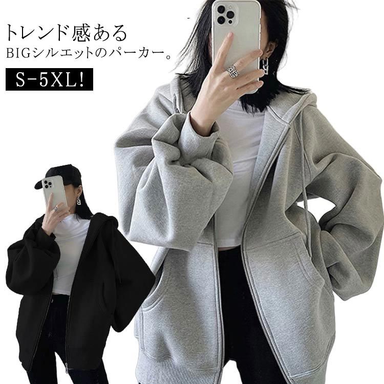 パーカー レディース ジップアップパー レディースファッション 新作 ブラック グレー S M L XL 2XL 3XL 4XL 5XL