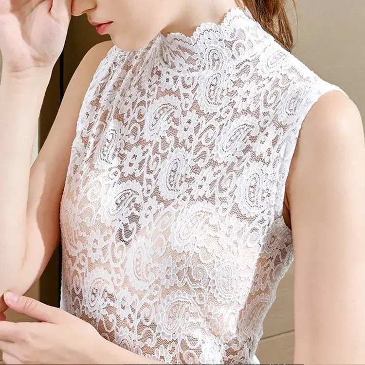 付け襟 つけ襟 レース ハイネック レディース フェイク襟 フリル タンクトップ ノースリーブ 偽の襟 ブラウス レイヤード 重ね着 おしゃれ 華やか インナー つけ衿 ノースリーブカットソ シンプル