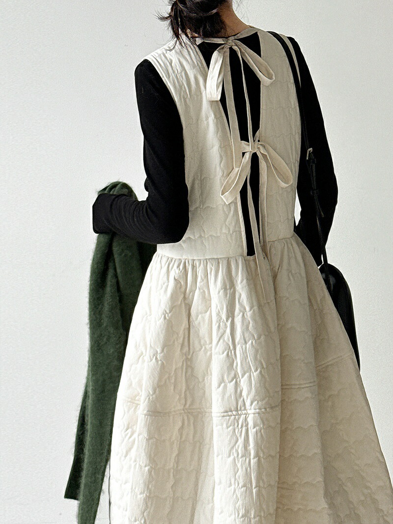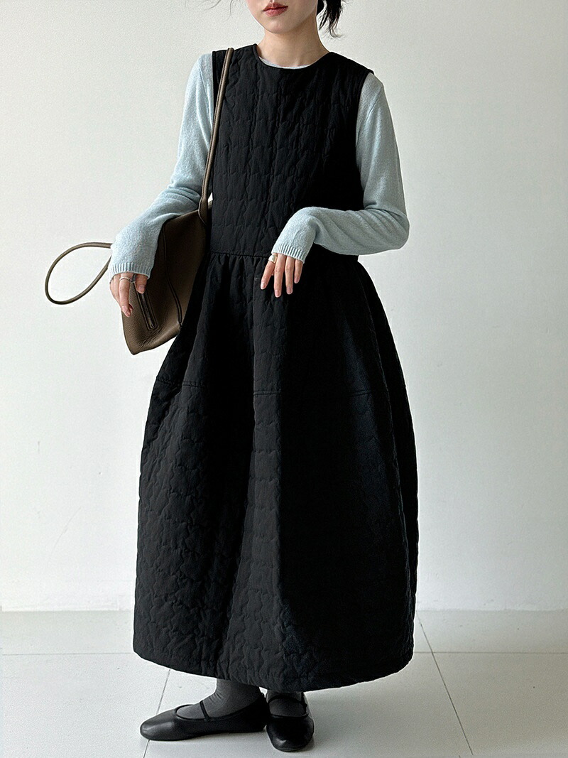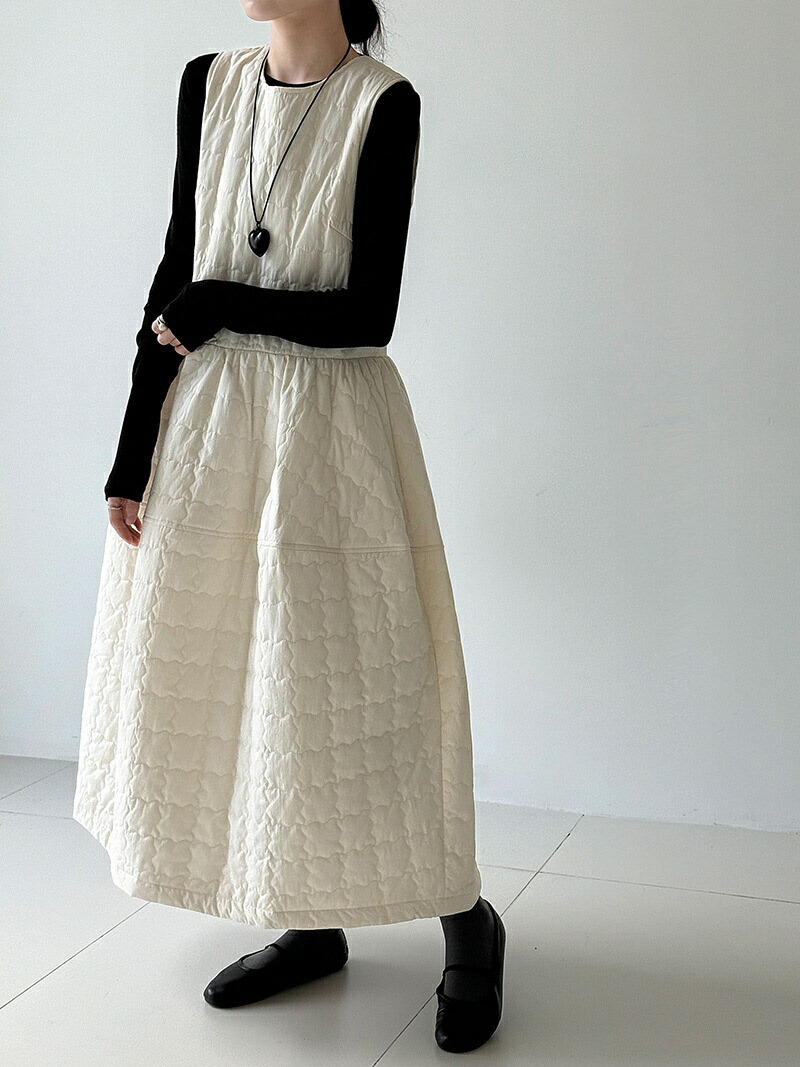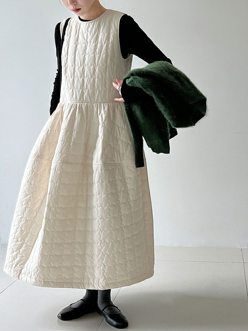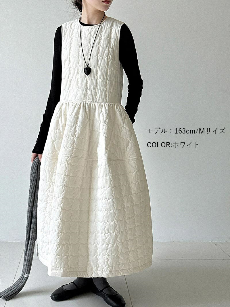 キルティング ワンピース 秋冬 きれい ワンピース 超目玉商品 ホワイト ブラック M L