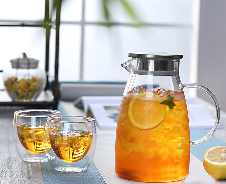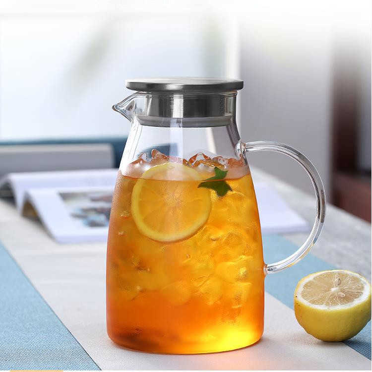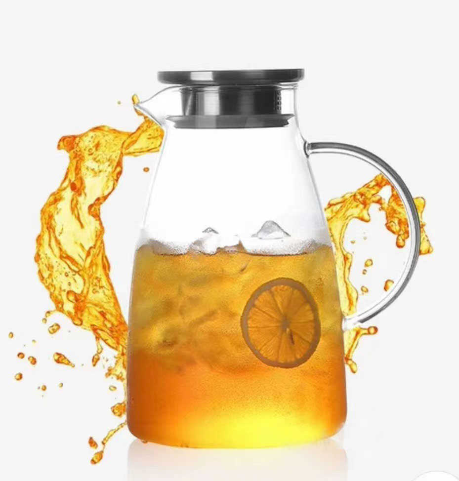 1500ml ガラスピッチャー 直火 耐熱ガラスポット ガラスケトル 2000ml ティーポット 直火電気ケトル対応 ガラス ステンレス茶こし一体型蓋 1.5リットル