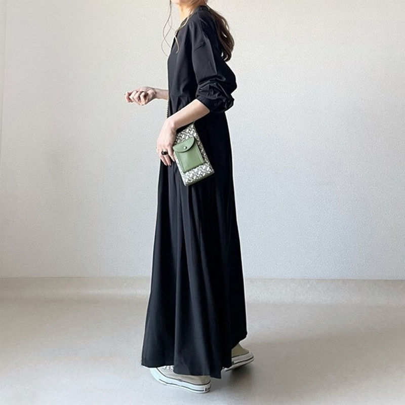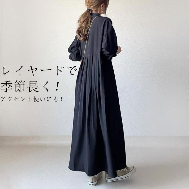 シャツワンピース 長袖 ワンピース レ ブラック 新色/コーヒー色 NEW・グレー NEW・キャラメル S M L