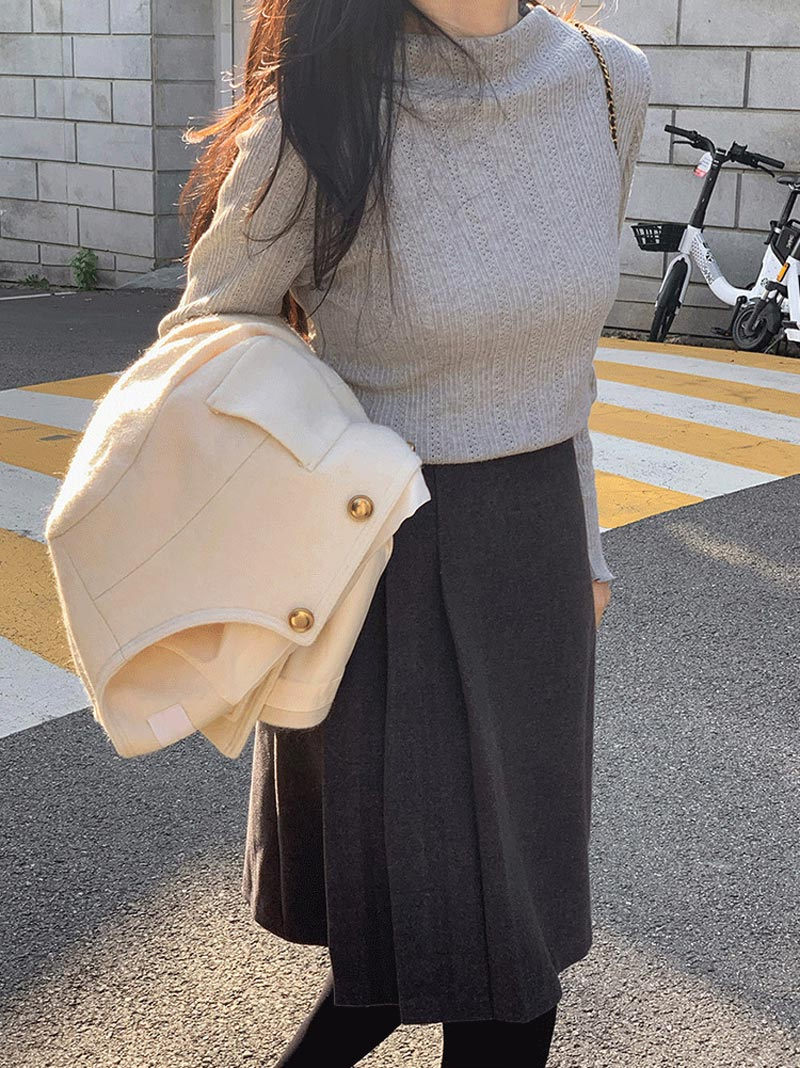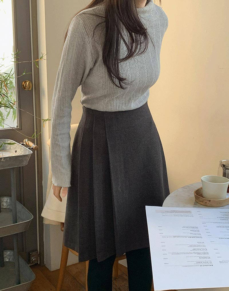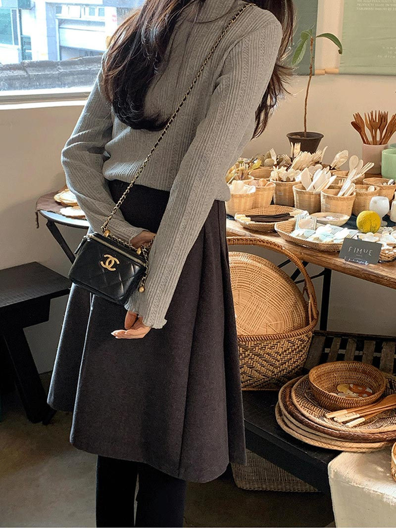 スカート ひざ丈 秋冬 プリーツスカー レディースファッション 人気 ブラック ダークグレー S M L XL