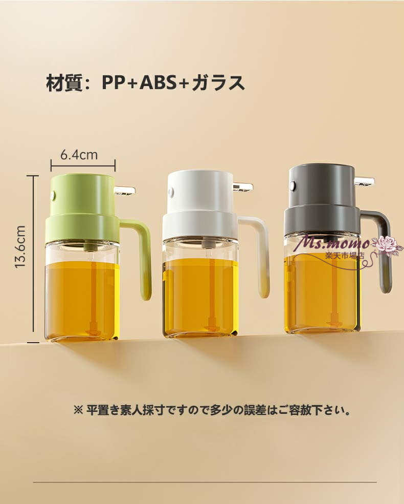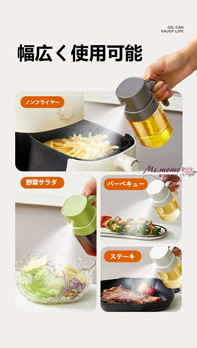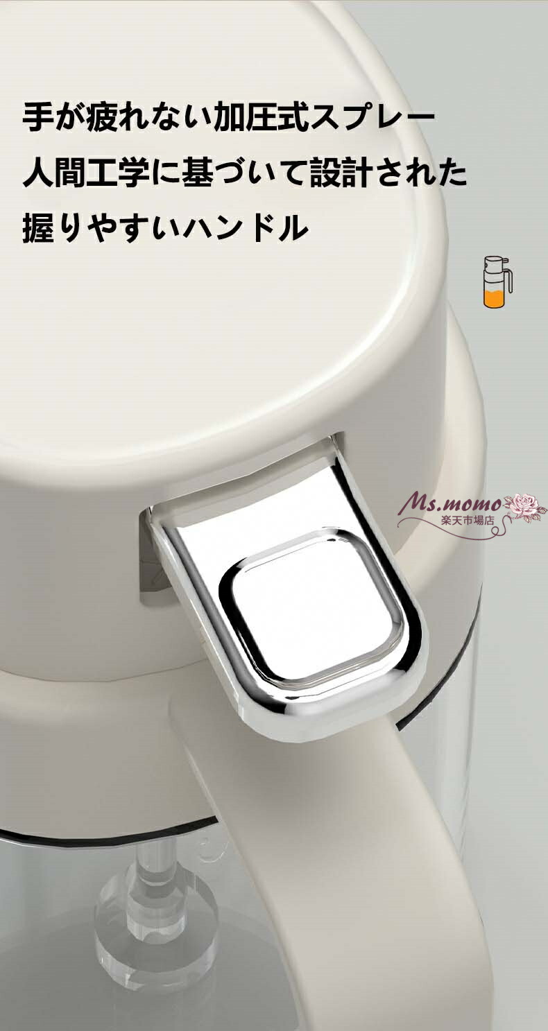 リークプルーフデザインで、液漏れを防止!大口径ボトルで食用油の注ぎ入れが簡単。ボタンを押すだけで細かいミストを噴出する必需品。キッチンでのストレスを解消します。使いやすい